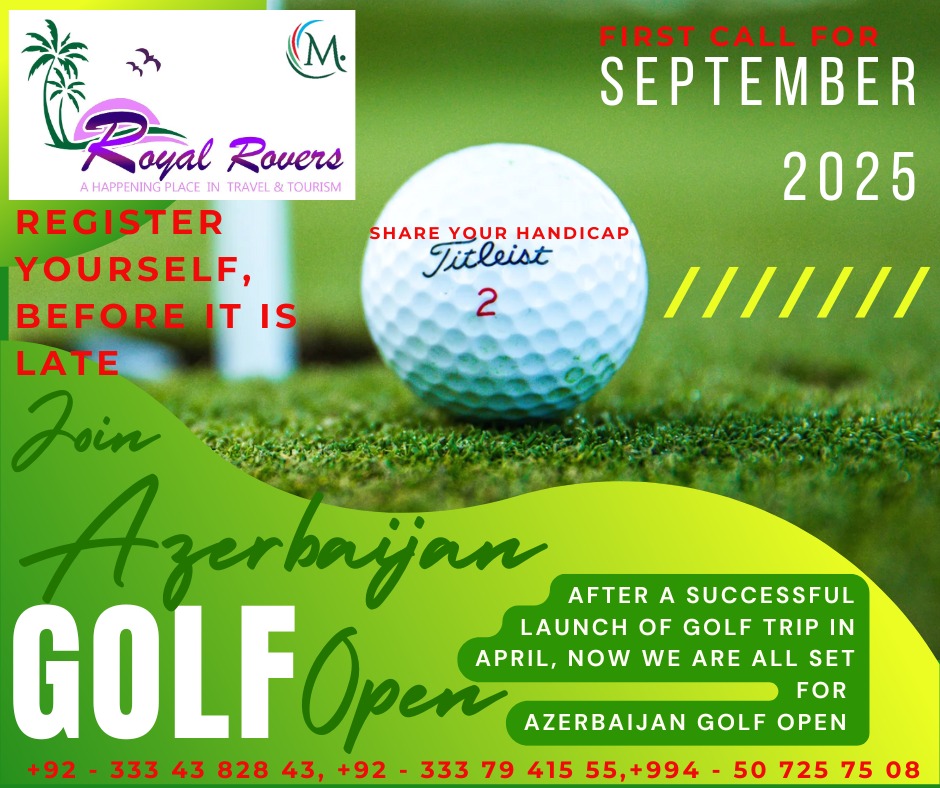 In the summer of 2025, Royal Rovers – M is organizing a special Golfer’s Gala, bringing together Pakistani and international golf enthusiasts to compete and enjoy Azerbaijan’s premier golf courses. This grand event will be the first-ever international golf tournament for Pakistani golfers, held in the months of June and July 2025. Free registrations are now open for golfers from all over the world!